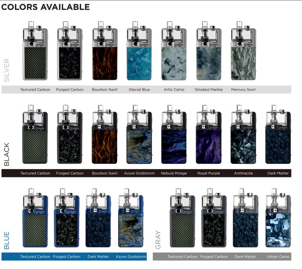 With an output power range of 5 to 50 watts, the Orion II provides ample power for a satisfying vaping experience. It features a large 1900mAh Li-Po battery, ensuring long-lasting performance, and supports fast charging with a DC 5V/2A Type-C connection.